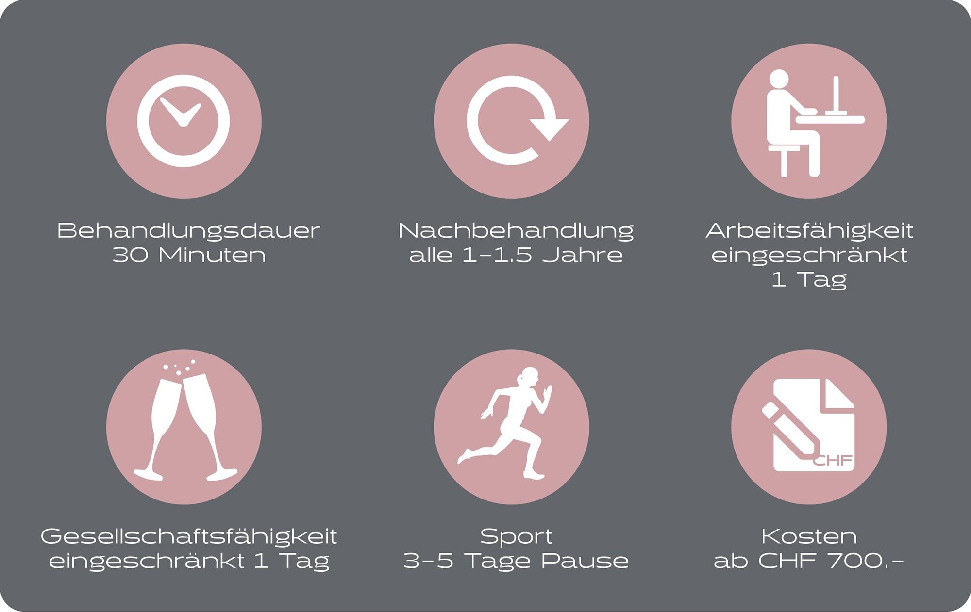 Es gibt viele unterschiedliche Fäden auf dem Markt, wir verwenden ausschliesslich 100% abbaubare Fäden. Die von uns verwendeten Methoden sind: